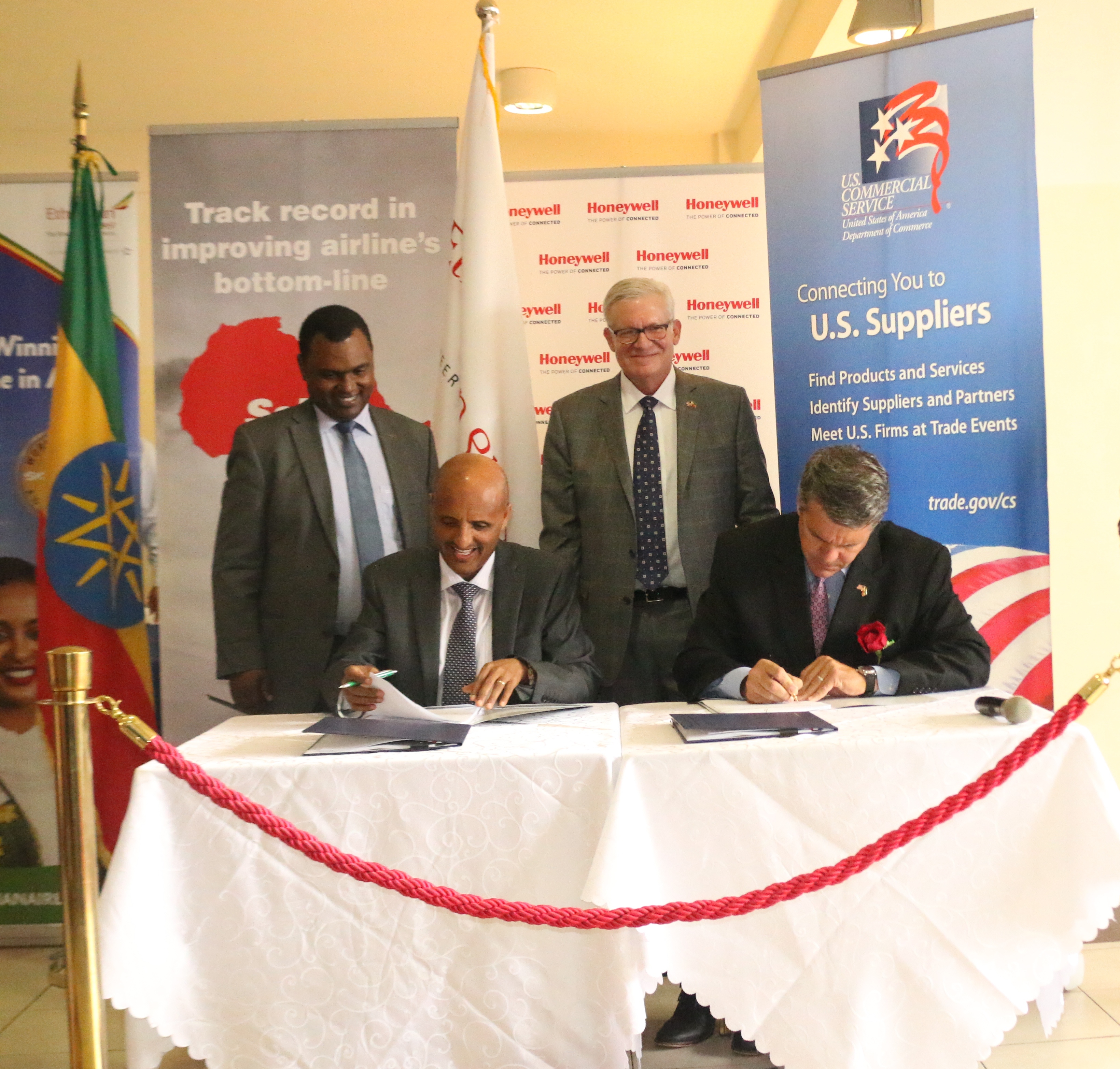 During the visit, Ethiopian Airlines announced deals with General Electric (GE) and Honeywell and a training grant from the U.S. Trade Development Agency (USTDA). USTDA is partnering with the Sabre Corporation to provide an Airline Solutions Training Program Technical Assistance grant for Ethiopian Airlines Enterprise, which could leverage up to $21.2 million in financing to support the procurement of airline information technology solutions, consulting services, and industry best practices. Ethiopian Airlines is procuring twelve General Electric engines valued at $444 million, as well as a separate $473.5 million 10-year maintenance contract. Ethiopian Airlines has also signed two contracts with Honeywell – a $10.2 million deal for the Bole Airport expansion and a $7.2 million Auxiliary Power Unit (APU) service contract.