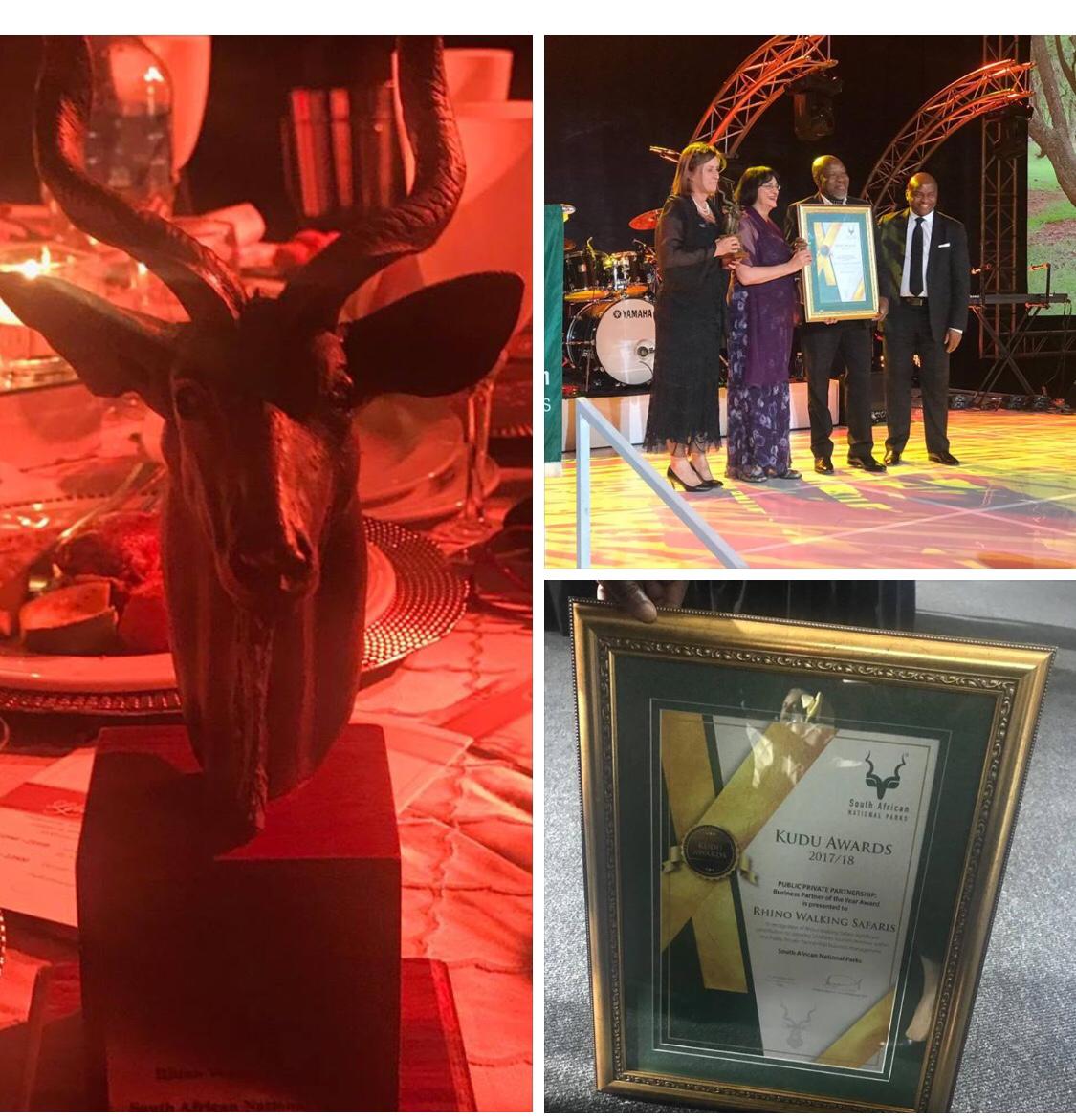 We’re so proud to announce that Rhino Post Safari Lodge and Rhino Walking Safaris has been awarded the prestigious Kudu Award as the Business Partner of the year.